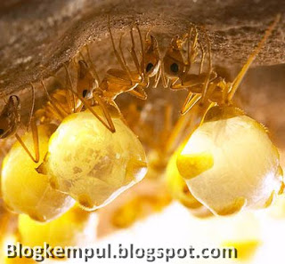Seekor semut Podomyrma cenderung mendekati ulat Lycaenid di Australia Selatan. Ulat ini mengeluarkan zat-zat yang menarik bagi semut, dan semut pada gilirannya memberikan perlindungan dari parasit. Semut sangat berlimpah, bahwa banyak spesies lain telah datang untuk bergantung pada mereka dalam berbagai cara.