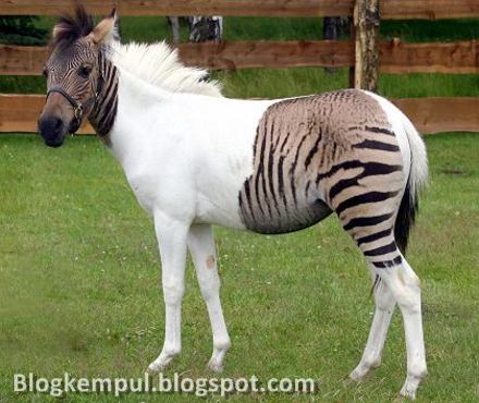 Eclyse demikianlah nama hewan yang mempunyai warna dan penampilan unik ini. Eclyse adalah hasil campuran dari Zebra dan Kuda.